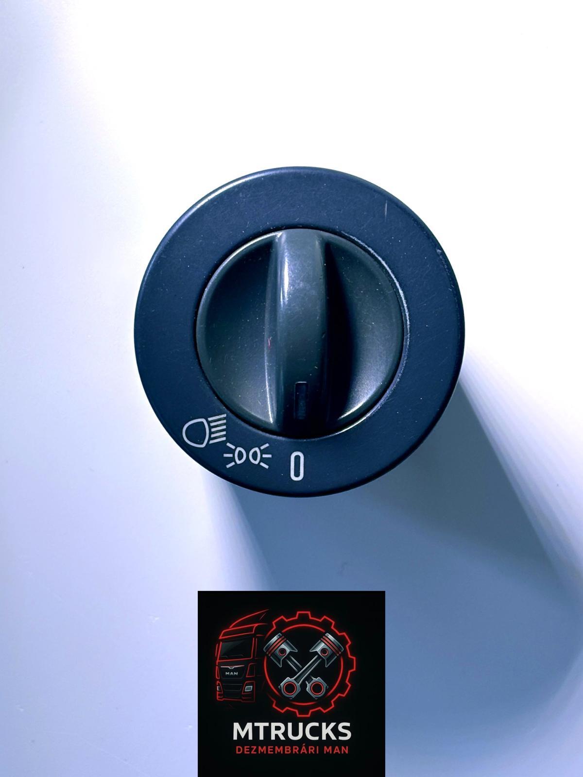 Bloc lumini original MAN, comutator principal pentru aprinderea farurilor. Acesta este butonul rotativ de lumini cu pozitii 0, pozitii si faza scurta. Nu este comutator pentru ceata si nu este de reglaj. Piesa este esentiala pentru comanda intregului sistem de iluminare exterior al camionului.
