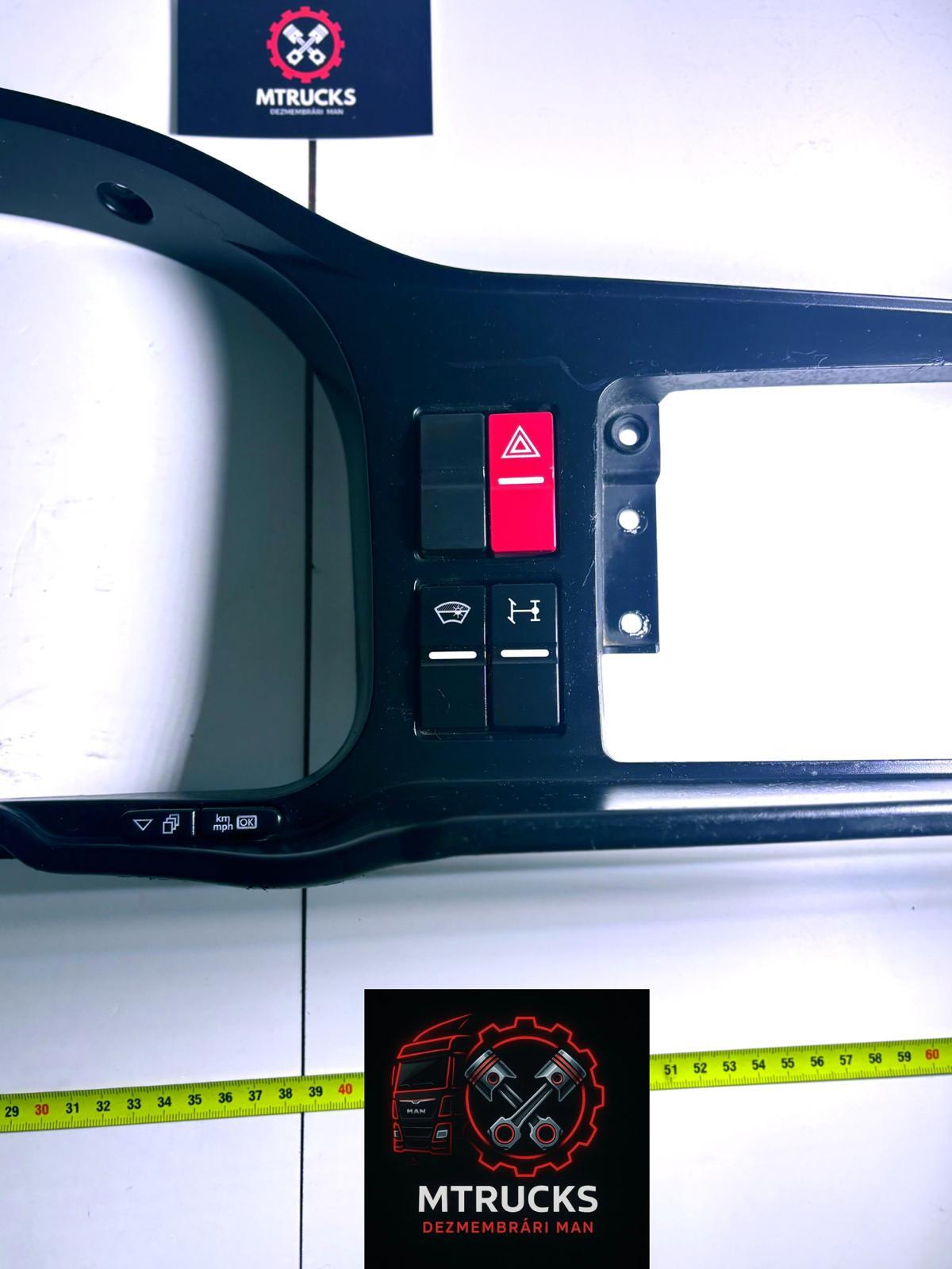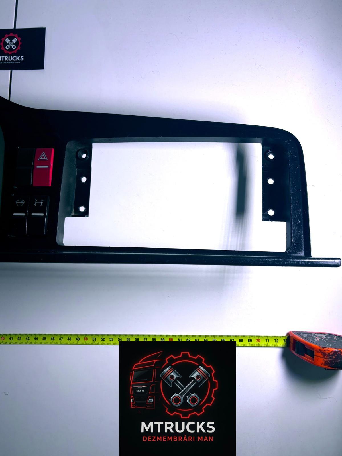 Ramă centrală bord MAN TGX / TGS, piesă originală MAN Genuine Parts, amplasată în zona consolei centrale – în jurul panoului de butoane, unității radio și comenzilor de climatizare.