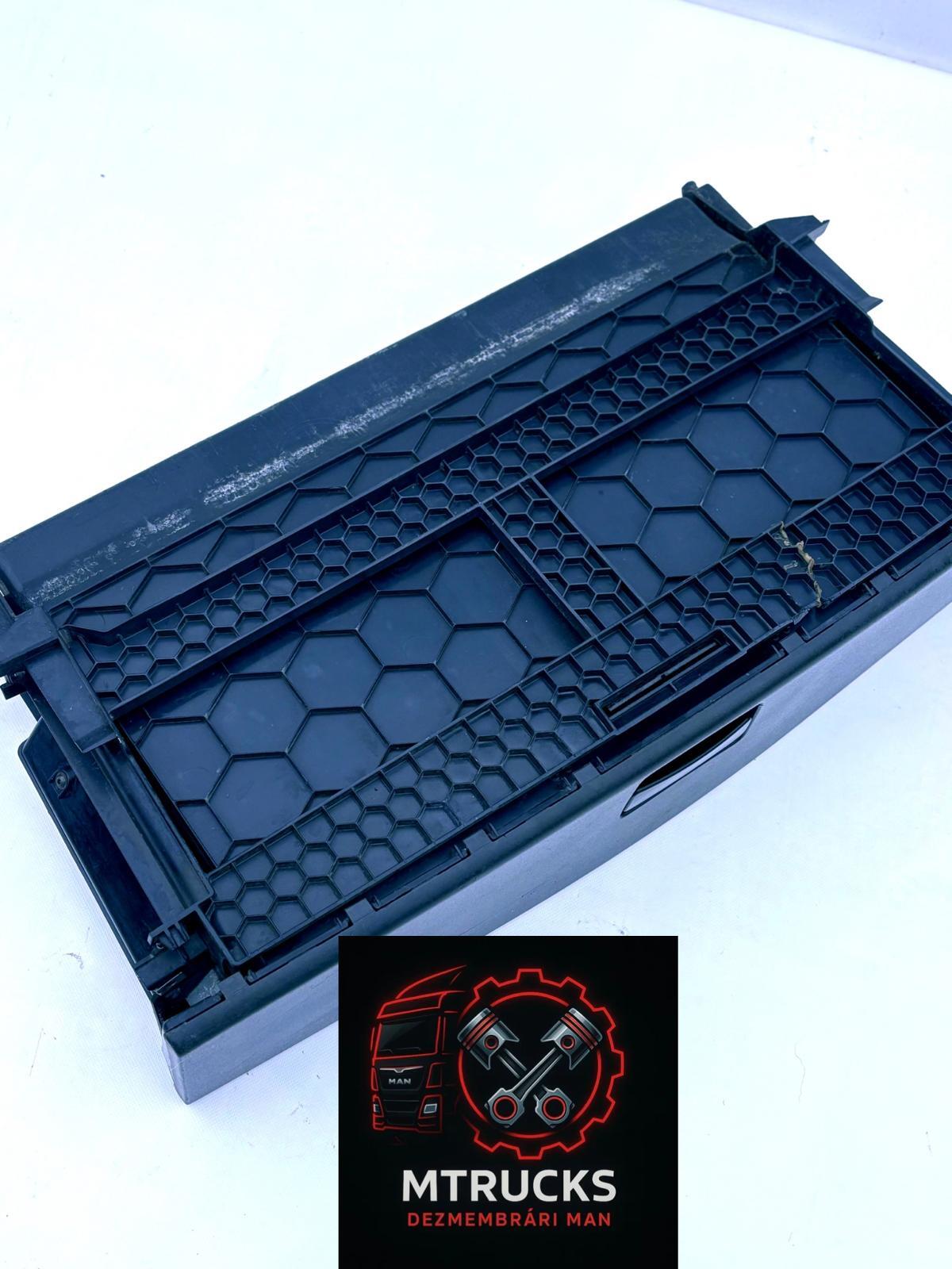 Piesă originală MAN Genuine Parts, utilizată pentru depozitarea obiectelor în bord, sub grila de ventilație și deasupra frigiderului sau tunelului central.