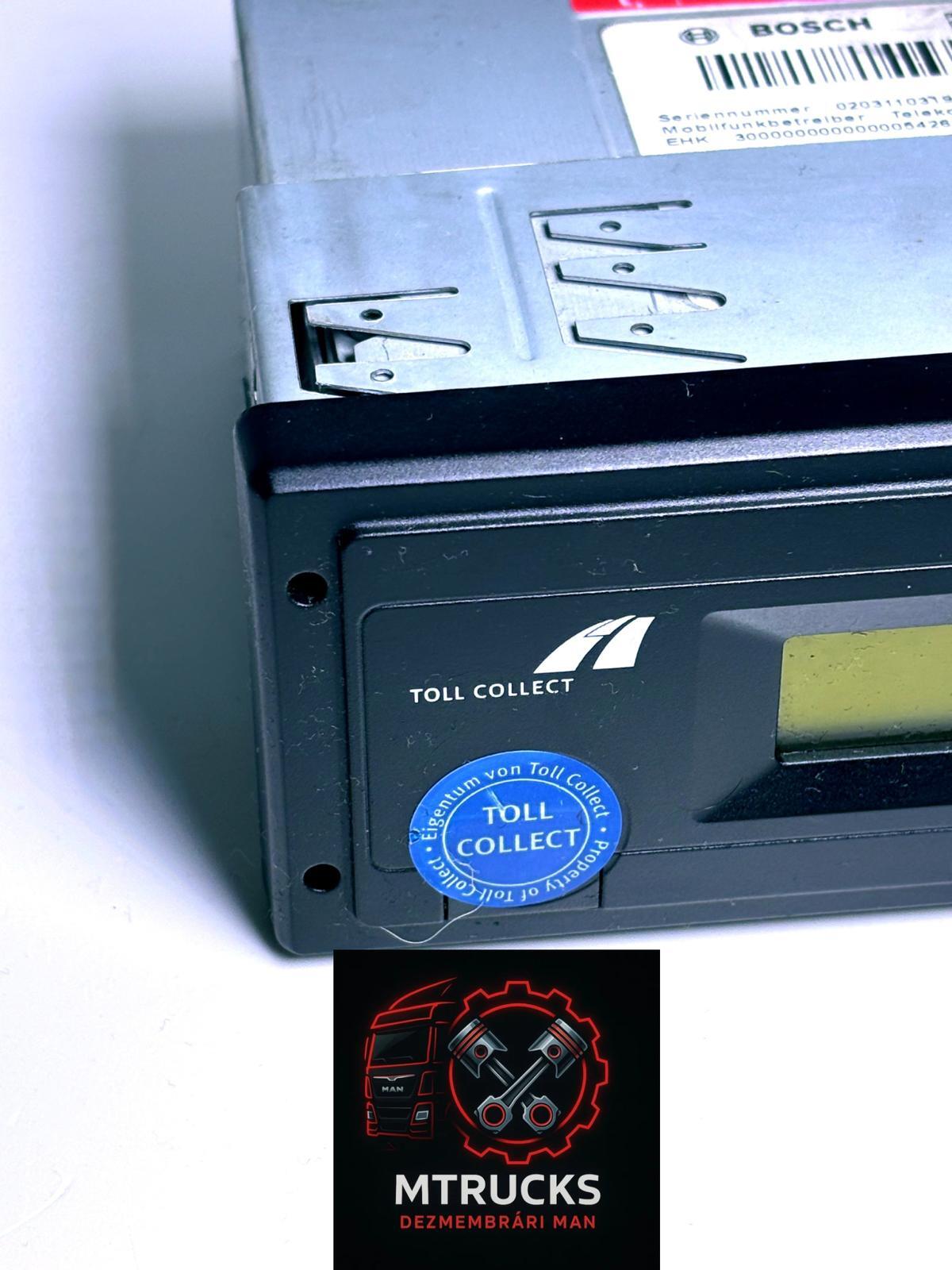 Unitatea de comandă Bosch ECU Toll Collect este un modul electronic instalat pe camioane pentru gestionarea sistemului automat de taxare rutieră din Germania și alte țări europene. Această unitate transmite în timp real date despre poziția vehiculului, clasa de emisii, numărul de axe și alte informații relevante pentru calculul taxelor de drum.